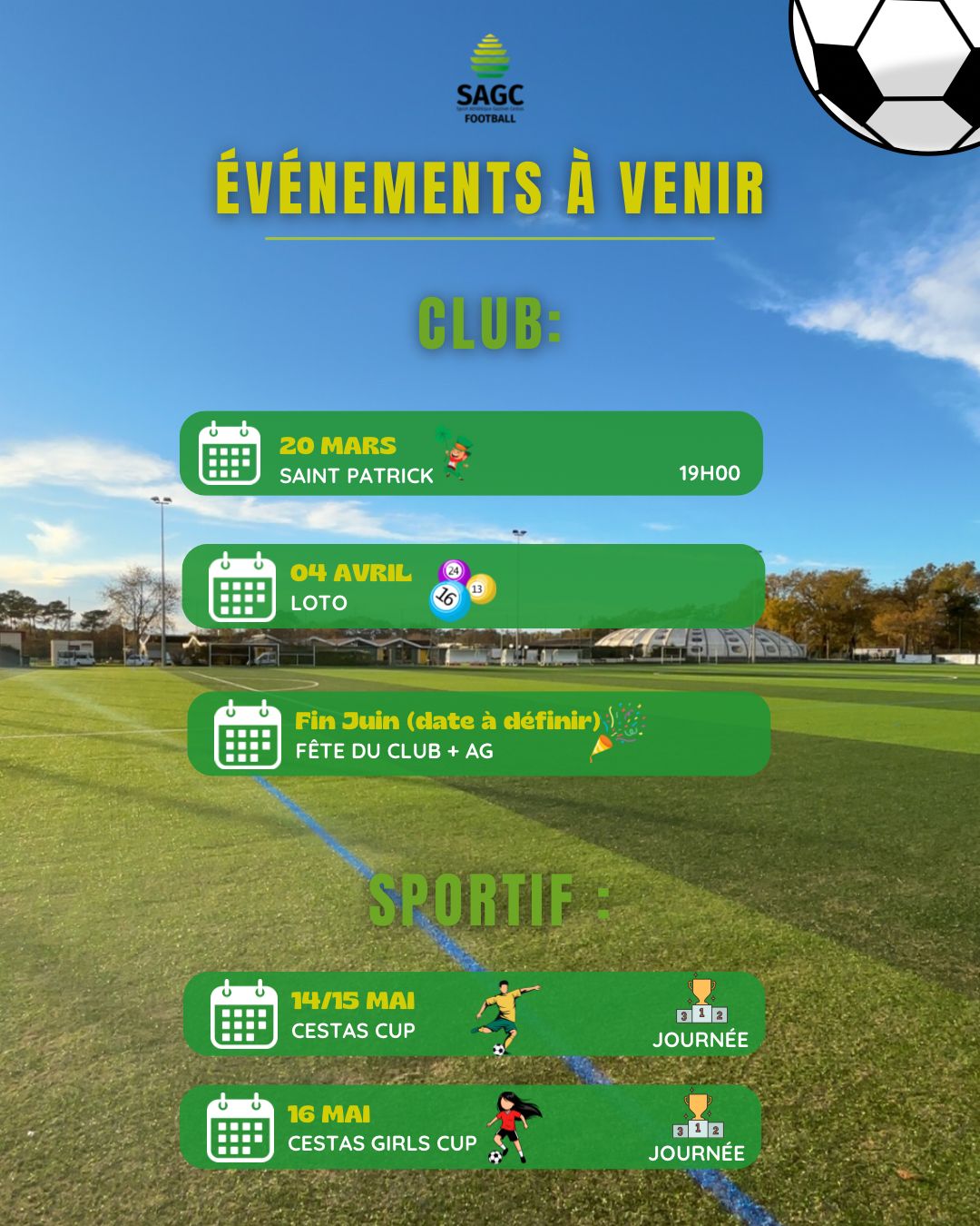 La saison 2025-2026 s’annonce riche en animations au SAGC Football !